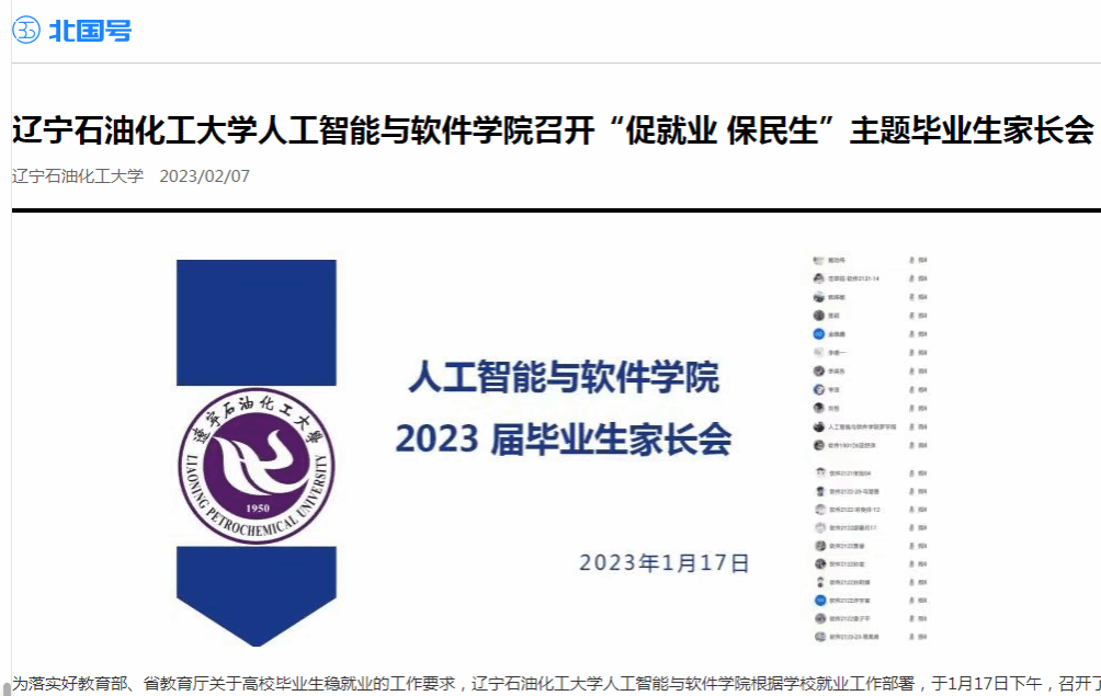 编者按:近日,辽宁日报·北国号、人民日报客户端·人民号等媒体平台对我校人工智能与软件学院召开“促就业 保民生”主题毕业生家长会进行了宣传报道。现将相关报道转载如下: