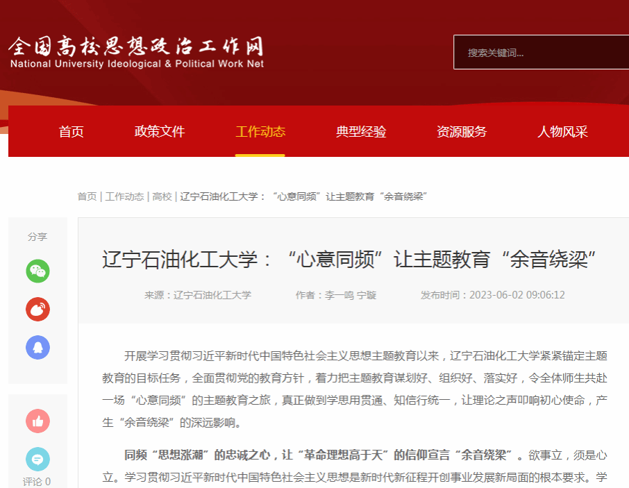 编者按:近日,全国高校思想政治工作网对我校紧紧锚定主题教育的目标任务,全面贯彻党的教育方针,着力把主题教育谋划好、组织好、落实好,令全体师生共赴一场“心意同频”的主题教育之旅,真正做到学思用贯通、知信行统一,让理论之声叩响初心使命,产生“余音绕梁”的深远影响进行了宣传报道。现将相关报道转载如下: