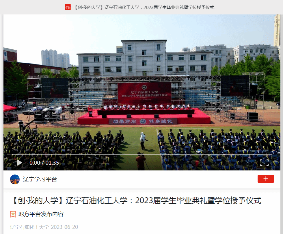 编者按:近日,学习强国辽宁学习平台、辽宁日报·北国号、人民日报客户端·人民号等媒体平台对我校2023届学生毕业典礼暨学位授予仪式以视频的形式进行了宣传报道。现将相关报道转载如下: