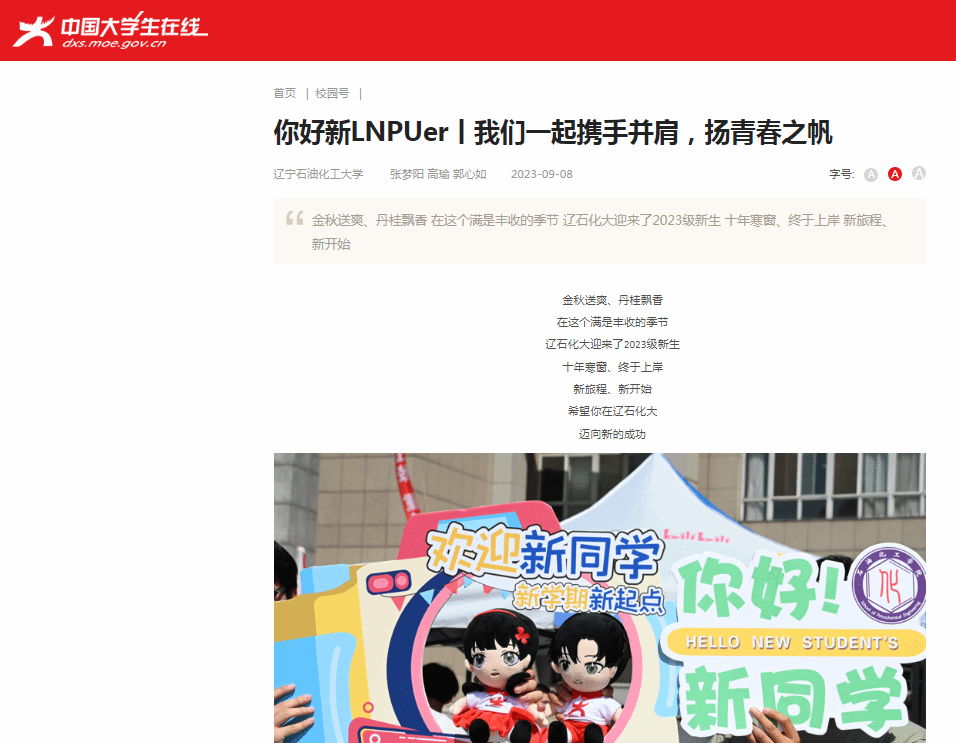 编者按:近日,教育部中国大学生在线网站对我校新媒体中心创作的喜迎2023级新生的现场新闻记录进行了刊载报道,现将相关报道转载如下:
