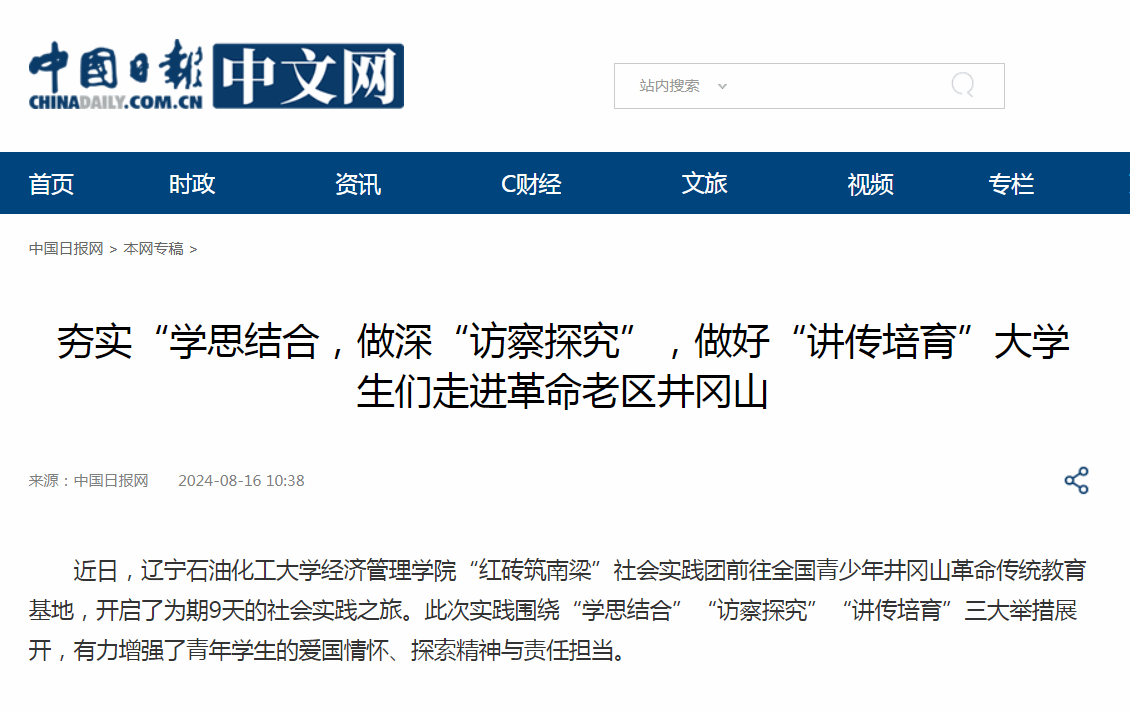 中国日报网:夯实“学思结合”,做深“访察探究”,做好“讲传培育”大学生们走进革命老区井冈山