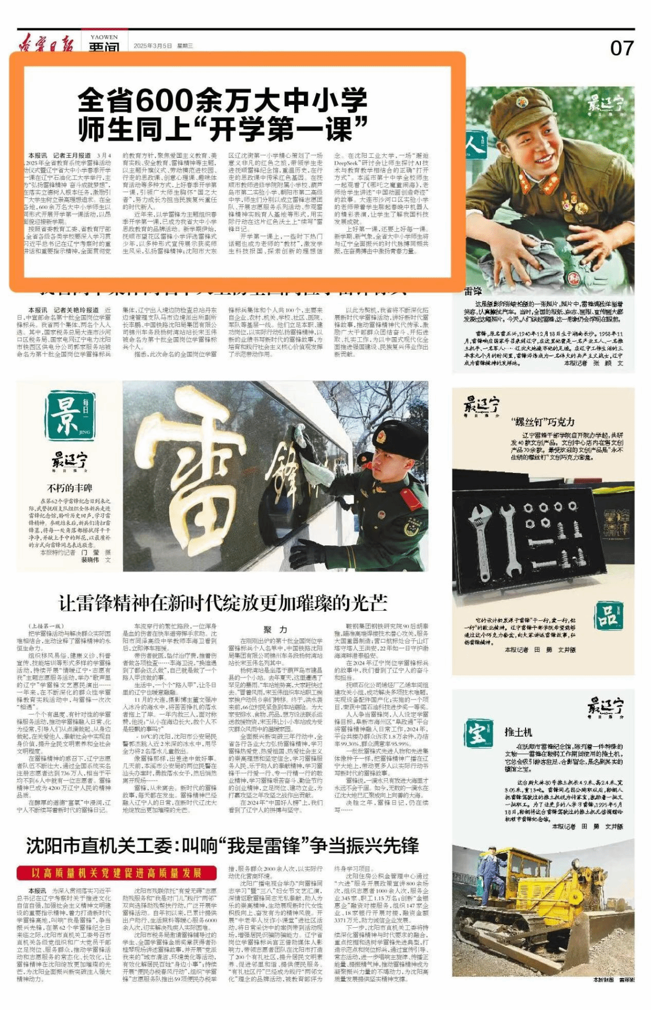 辽宁新闻、辽宁日报、辽宁省教育厅微信公众号、辽宁高校思政微信公众号、辽望·辽宁日报、人民日报少年网、人民网、北斗融媒、央视频:春季开学第一课!共同聆听雷锋的故事