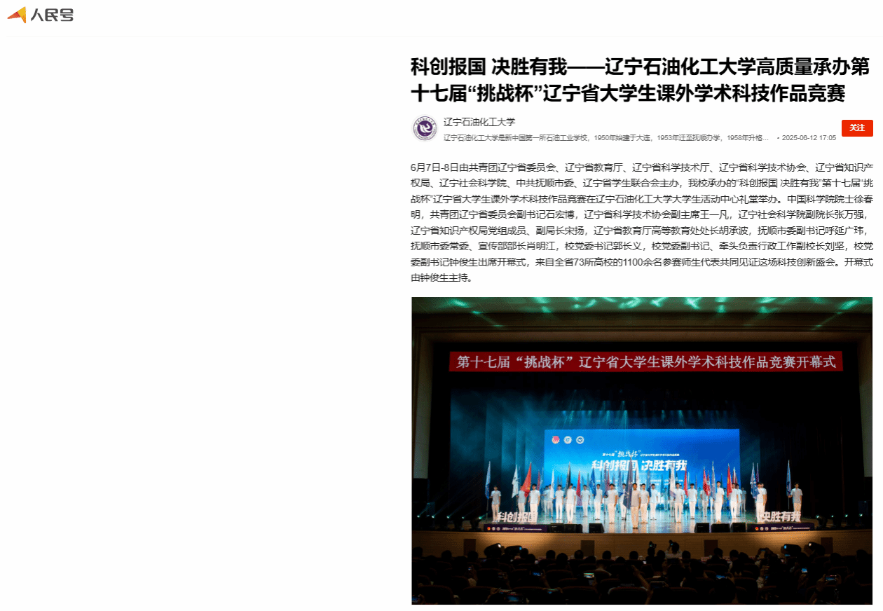 编者按:6月7日-8日由共青团辽宁省委员会、辽宁省教育厅、辽宁省科学技术厅、辽宁省科学技术协会、辽宁省知识产权局、辽宁社会科学院、中共抚顺市委、辽宁省学生联合会主办,我校承办的“科创报国 决胜有我”第十七届“挑战杯”辽宁省大学生课外学术科技作品竞赛在国产亚洲综合一区二区三区_亚洲欧美日韩中文天堂_尤物在线观看视频不卡无码_国产最新精品亚洲2025不卡_亚洲成Av人在线观看片水蜜桃大学生活动中心礼堂举办。人民日报客户端·人民号、辽宁日报·辽望号、搜狐号等媒体平台对此进行了宣传报道。现将相关报道转载如下: