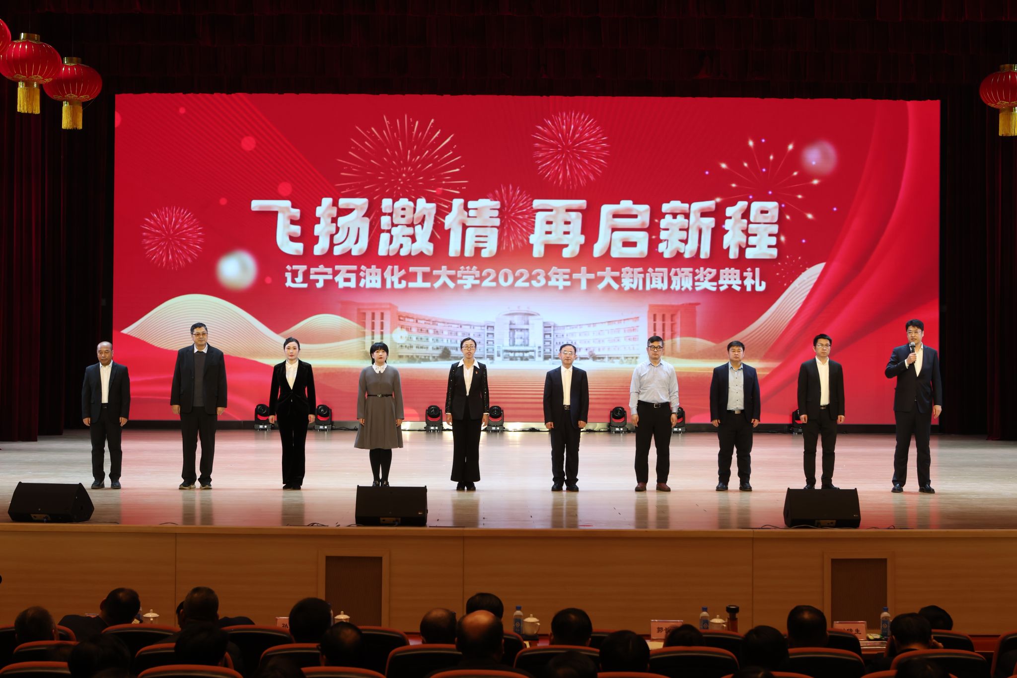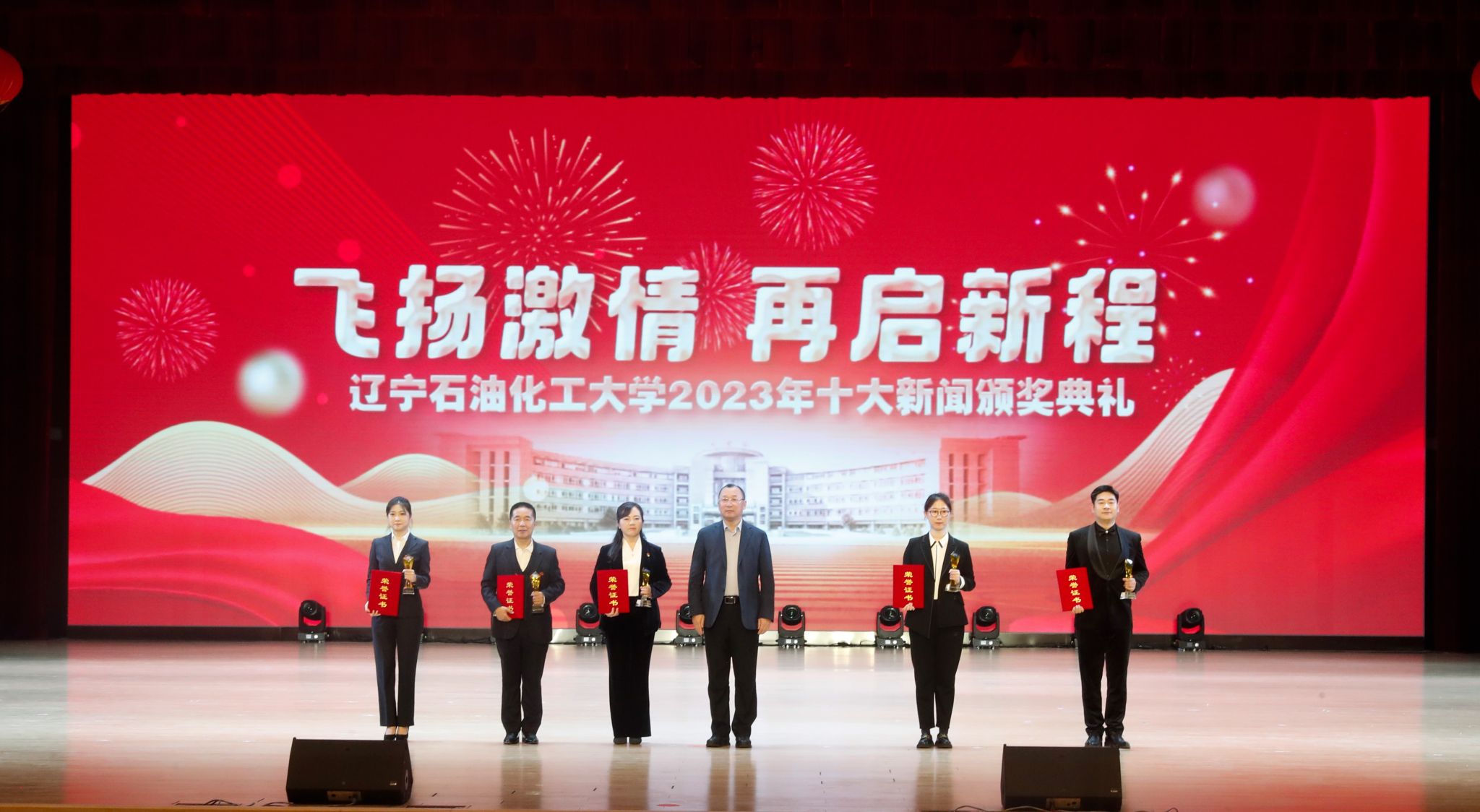 岁序常易,华章日新,学校十大新闻颁奖典礼至今已经成功举办了五届。带着2023年的辛勤耕耘与满满收获再启新征程,全体辽石化大人将继续稳中求进促提升,以进促稳谋突破,争分夺秒抓紧干,在加快推进特色鲜明的一流高水平应用型大学建设道路上赓续前行,奋力书写2024年辽石化大踔厉奋发、飞扬激情、团结筑梦、接续奋斗的崭新篇章!(撰稿人:娄永利 刘桓璐 校对人:陈雪峰 审稿人:雷冬海/张永利 摄)