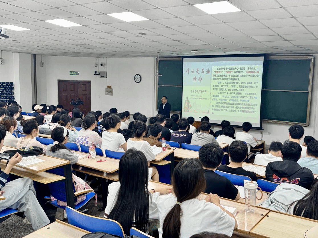 刘坚以“石油精神是什么”破题,带领师生回溯石油工业的光辉历程。他系统阐释了王进喜“铁人精神”、大庆精神、玉门精神、克拉玛依精神等精神内核,并号召青年学子在新时代传承石油精神,勇担能源报国使命。